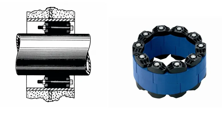 Обеспечение герметичности кессона достигается путем использования гермовводов. Это специальные разжимающиеся муфты, которые работают в пространстве между поверхностью отверстия в бетоне и обжимаемой трубой. Гермовводы обеспечивают необходимую и надежную герметичность соединении самого кессона со скважинной и отводящей водопроводной трубами.