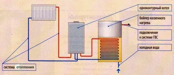 Все большую популярность в настоящее время получает система с накопительным баком. Он представляет собой дополнительный бак, служащий хранилищем горячей воды и содержит внутри нагревательный элемент. Кроме этого, обычно он дополнительно подключается к системе отопления в качестве второго контура нагрева и получает дополнительно тепло оттуда. Это позволяет экономить на прямых расхода подогрева воды и уменьшать потери тепла. Такая система называется бойлером косвенного подогрева.