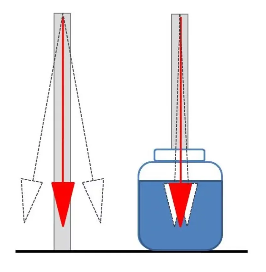 Оказывается, отвес можно успокоить даже на сильном ветру. Для этого грузик, находящийся на его конце, следует всего лишь погрузить в банку с водой.